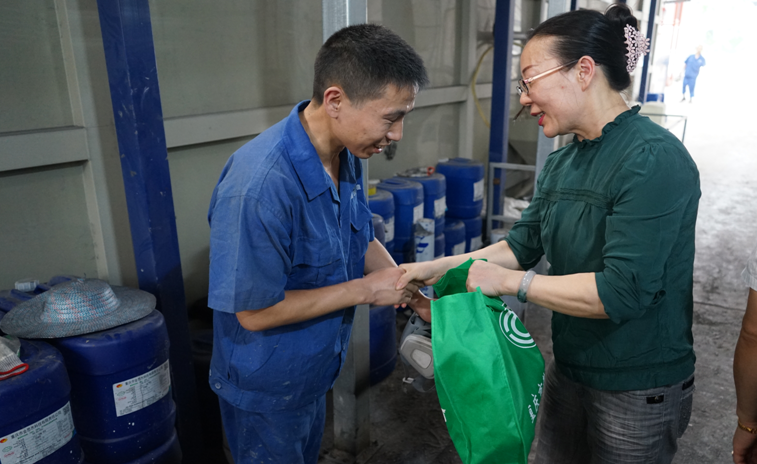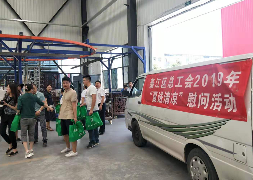 職工們激動(dòng)地說(shuō):總工會(huì)真好!總工會(huì)的領(lǐng)導(dǎo)真好!噴房里溫度那么高,沒(méi)想到領(lǐng)導(dǎo)們把禮物送到里面來(lái)看我們,真的太感謝了!包裝組的姐妹們拿到禮物,開(kāi)心的笑著,談?wù)撝?ldquo;工會(huì)是我們的娘家人,今天娘家人來(lái)看我們啦,還給我們送來(lái)了西瓜、綠豆、冰糖、防暑藥品,我們好幸福哦!”