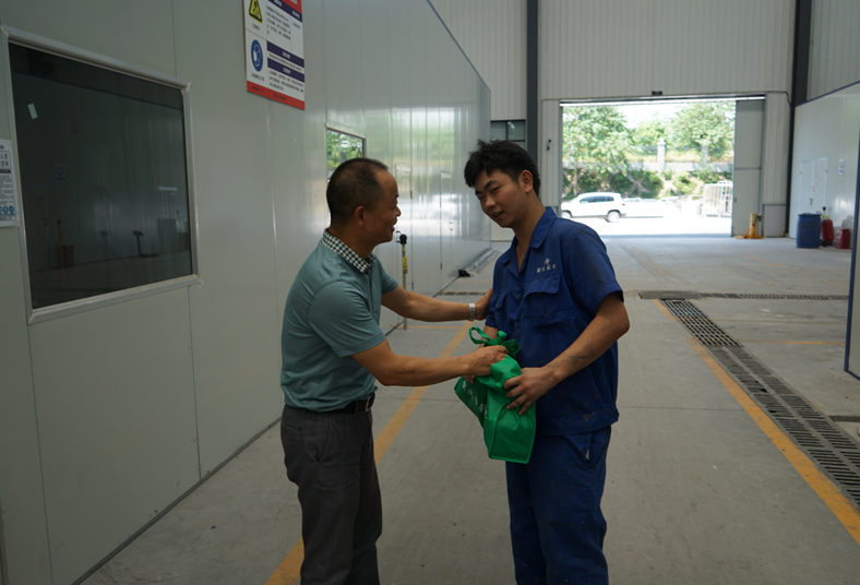 無(wú)論是鈑金車(chē)間的打磨崗位,還是噴涂車(chē)間的噴房,無(wú)論是有粉塵的崗位還是溫度高達(dá)40多度的班組,劉洪兵主任等領(lǐng)導(dǎo),都將清涼禮物親自送到每個(gè)職工的手上,并親切地囑咐他們注意防暑,多喝水,保重身體;還鼓勵(lì)他們熱愛(ài)公司,努力工作。